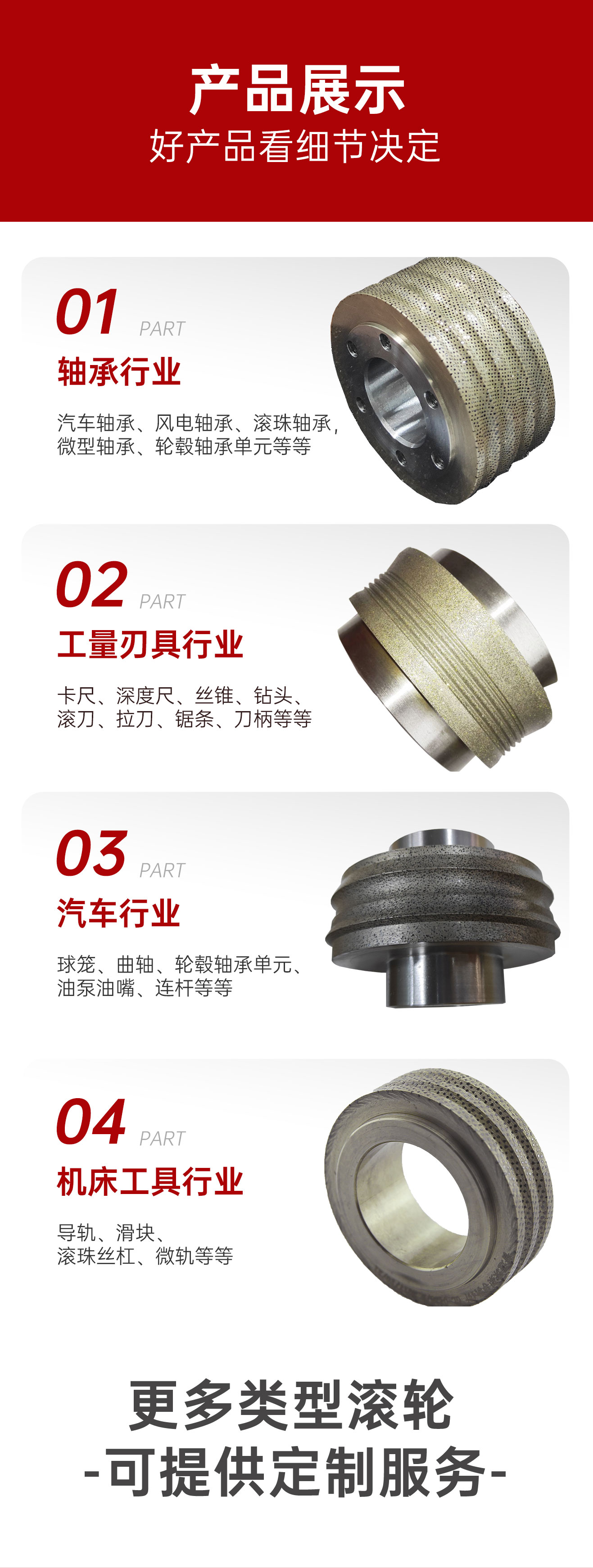 成型金剛石滾輪是通過單軸向進(jìn)給方式修整普通陶瓷砂輪或CBN砂輪,把金剛石滾輪的外形輪廓通過砂輪復(fù)制到零件表面,在批量生產(chǎn)和磨削工藝性能的過程中,較短修整時間和較長工件壽命帶來生產(chǎn)的高效性和工藝一致性。