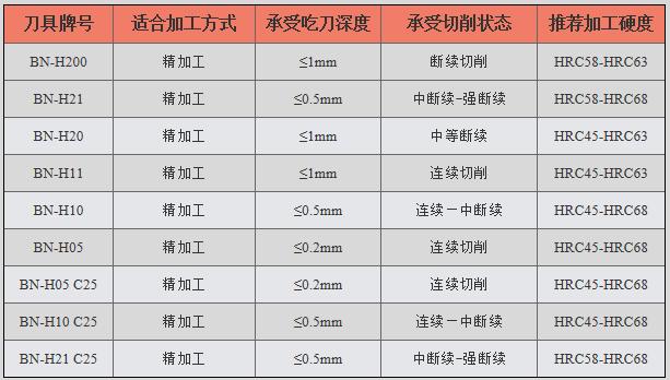 風(fēng)電齒輪、風(fēng)電軸承等大型零部件,多采用淬火鋼材質(zhì),硬度在HRC58-62。為應(yīng)對(duì)這類(lèi)材質(zhì),華菱推出高硬度、高耐磨性的全貼面CBN刀具BN-H系列刀片。這個(gè)H系列包含多種刀具牌號(hào),不僅有BN-H200,還有適用于連續(xù)切削的BN-H05 CBN刀片,適用于輕斷續(xù)切削的BN-H10 CBN刀片,以及適用于強(qiáng)斷續(xù)切削的BN-H21CBN刀片等,必要時(shí)還可以添加涂層,以獲得更優(yōu)異的切削性能,提高加工精度和壽命。