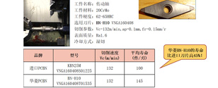 結(jié)果:相比進口PCBN刀片.華菱BN-H200刀具壽命提高百分之45