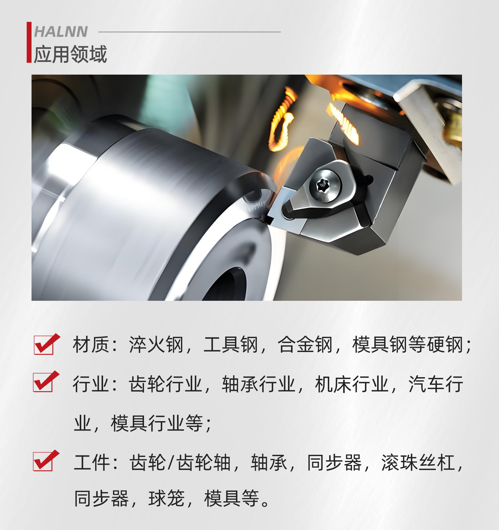BN-H05系列CBN刀具廣泛應(yīng)用于淬火鋼、工具鋼、合金鋼、模具鋼等硬鋼材質(zhì)的加工,服務(wù)于齒輪、軸承、機(jī)床、汽車、模具等多個行業(yè)。