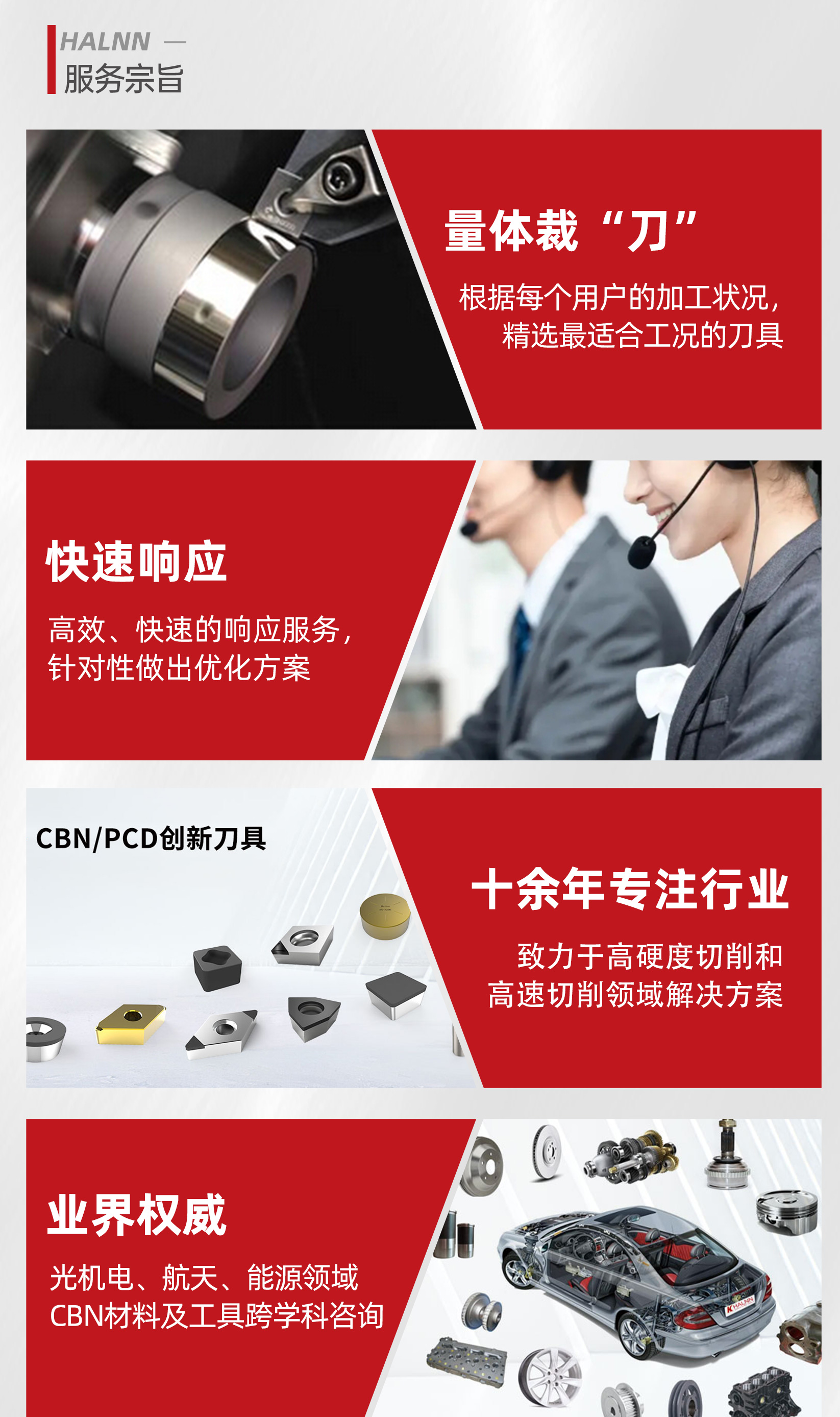 華菱超硬始終堅(jiān)持“量體裁刀”的服務(wù)宗旨,根據(jù)每個用戶的加工狀況,精選最適合工況的BN-H05系列刀具,并提供快速響應(yīng)服務(wù)和針對性的優(yōu)化方案。