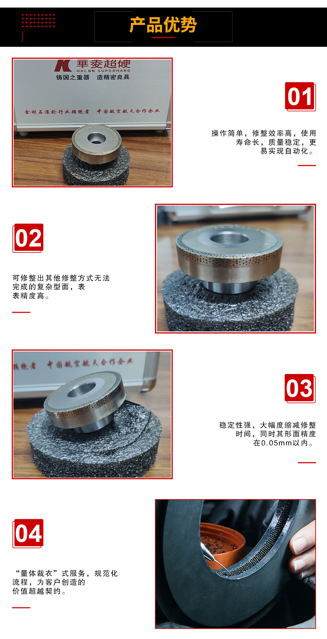 國內(nèi)超精密金剛石工具標(biāo)桿,國內(nèi)精密修整滾輪和精密電鍍鉸刀的行業(yè)標(biāo)準(zhǔn)起草單位。