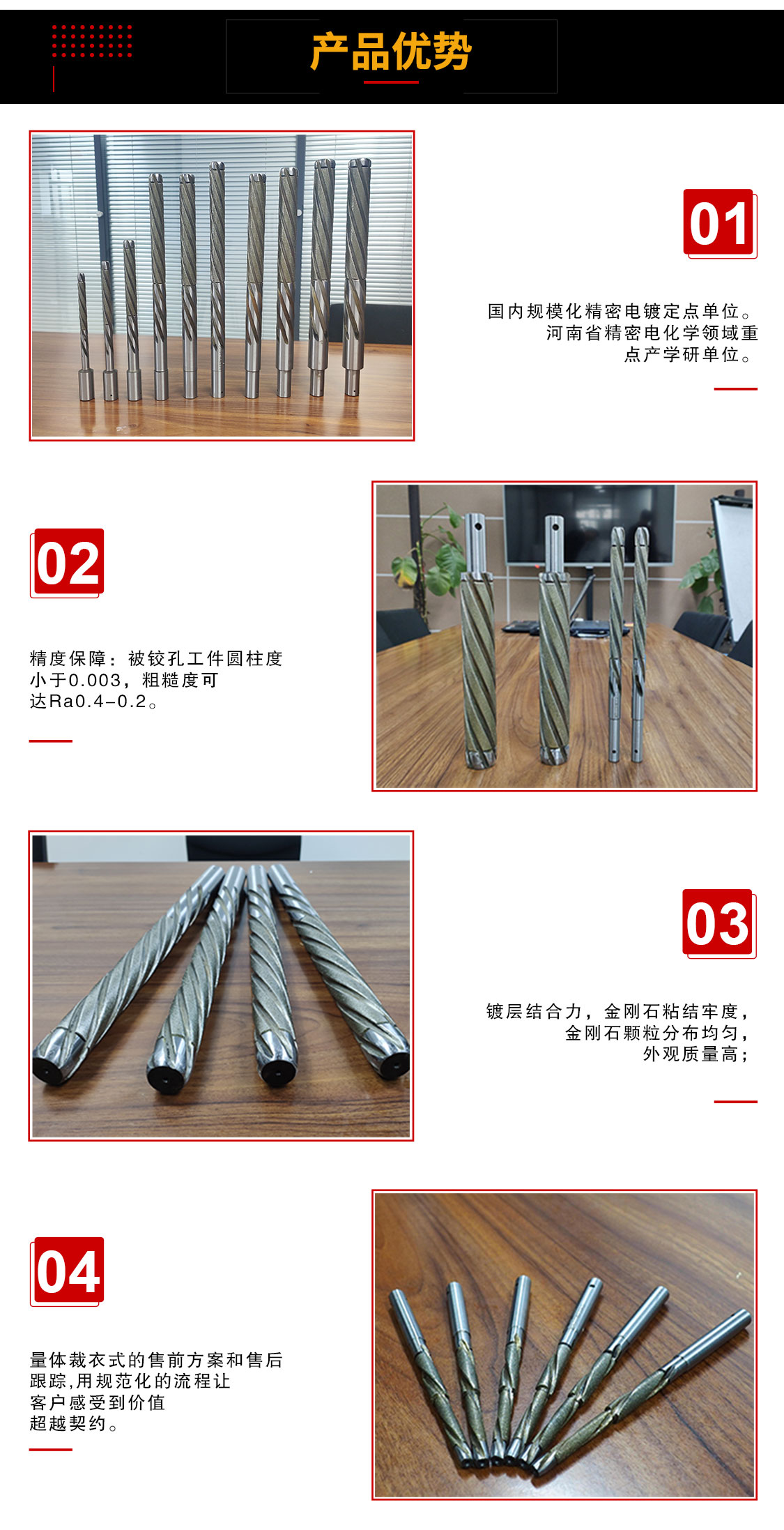 國(guó)內(nèi)超精密金剛石工具標(biāo)桿,國(guó)內(nèi)精密修整滾輪和精密電鍍鉸刀的行業(yè)標(biāo)準(zhǔn)起草單位。