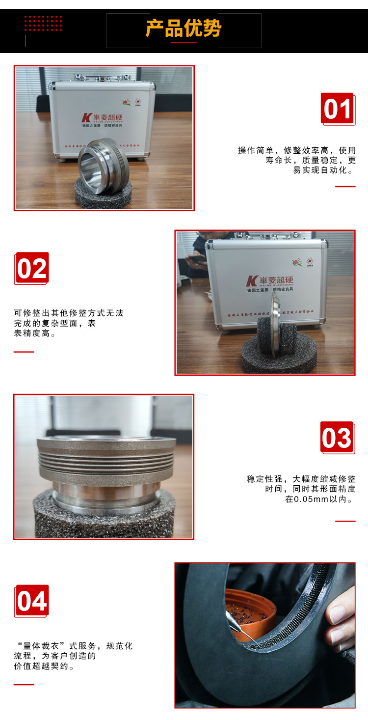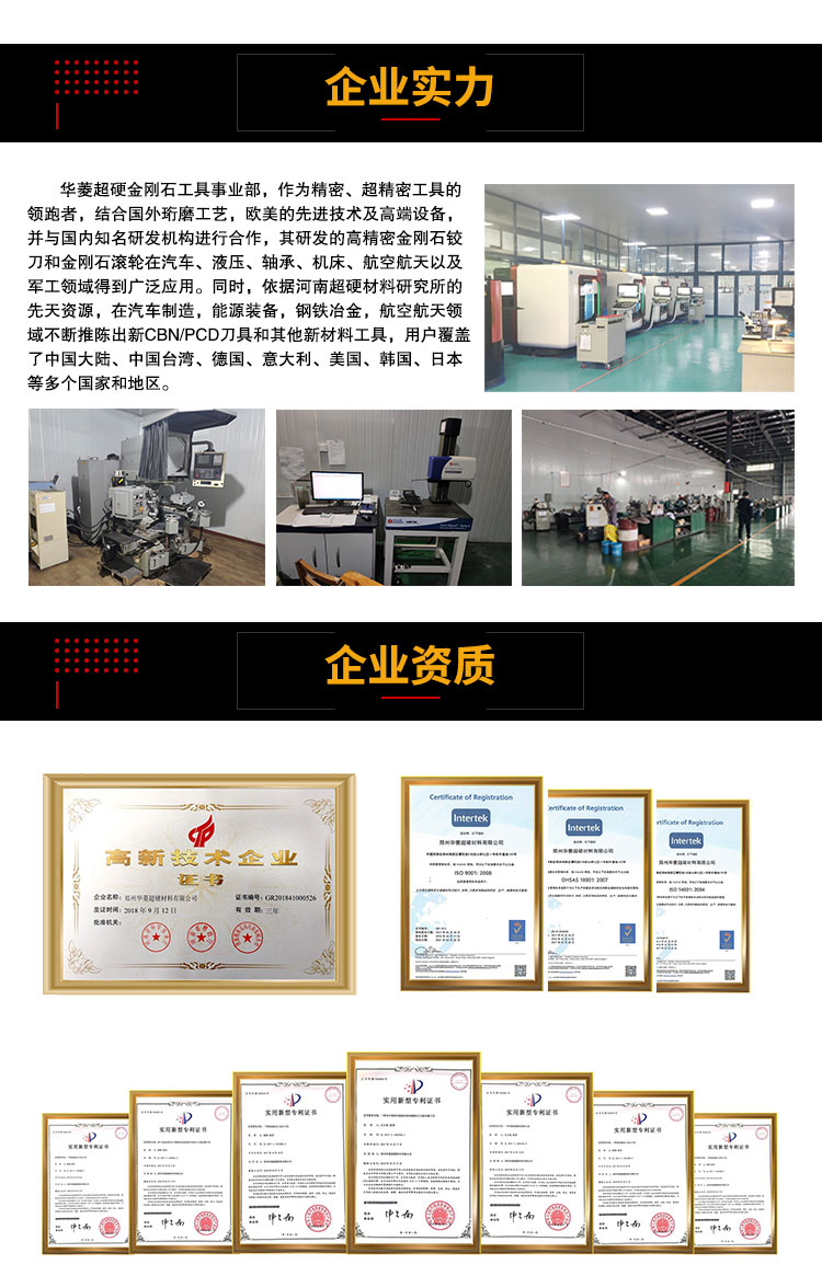 國內(nèi)超精密金剛石工具標(biāo)桿,國內(nèi)精密修整滾輪和精密電鍍鉸刀的行業(yè)標(biāo)準(zhǔn)起草單位。